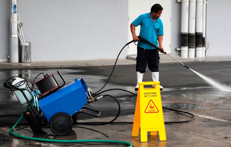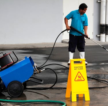 For areas with heavy grime or stains, we use scrubbing machines and high-pressure waterjets. These methods are ideal for restoring cleanliness to hard surfaces, both indoors and outdoors.
